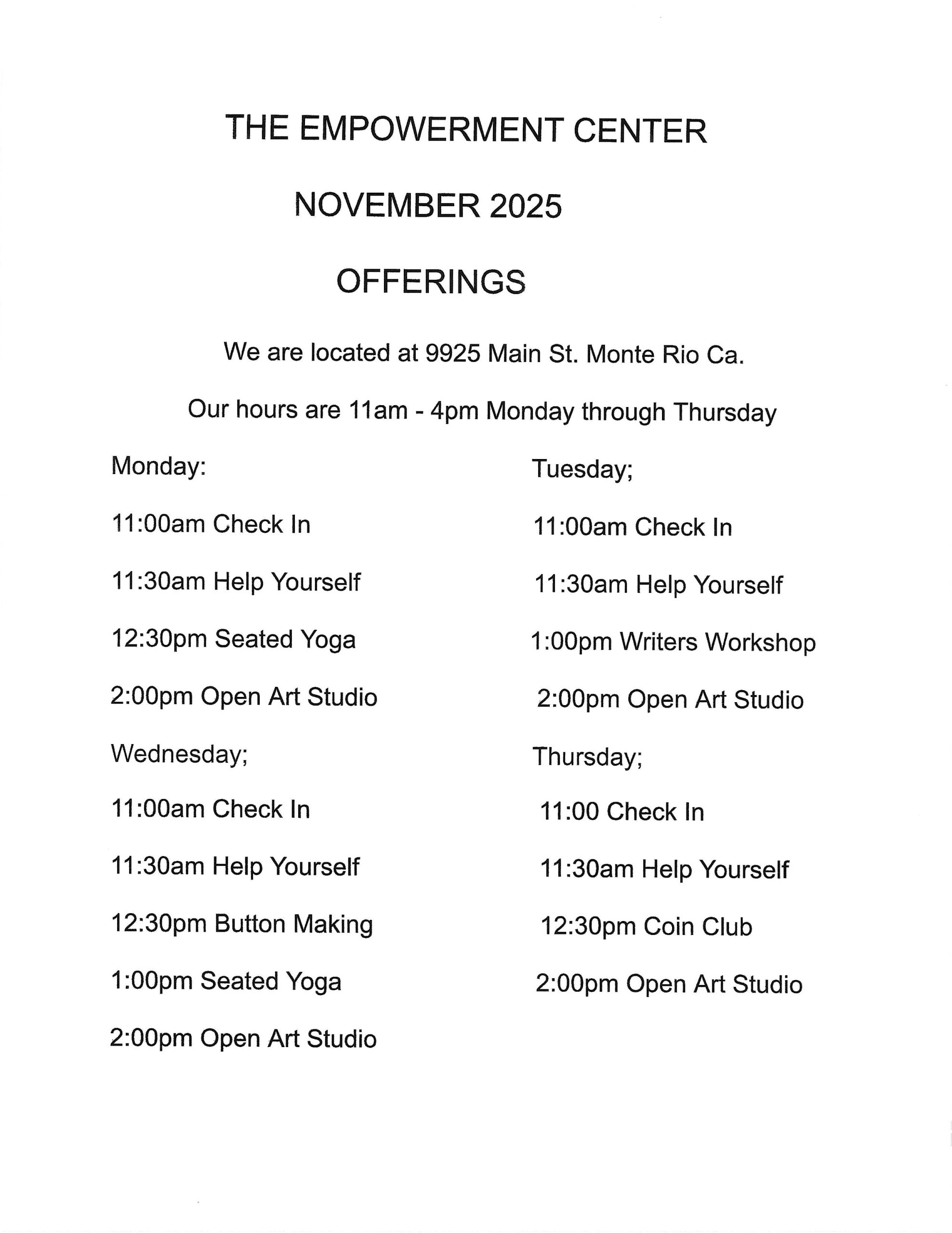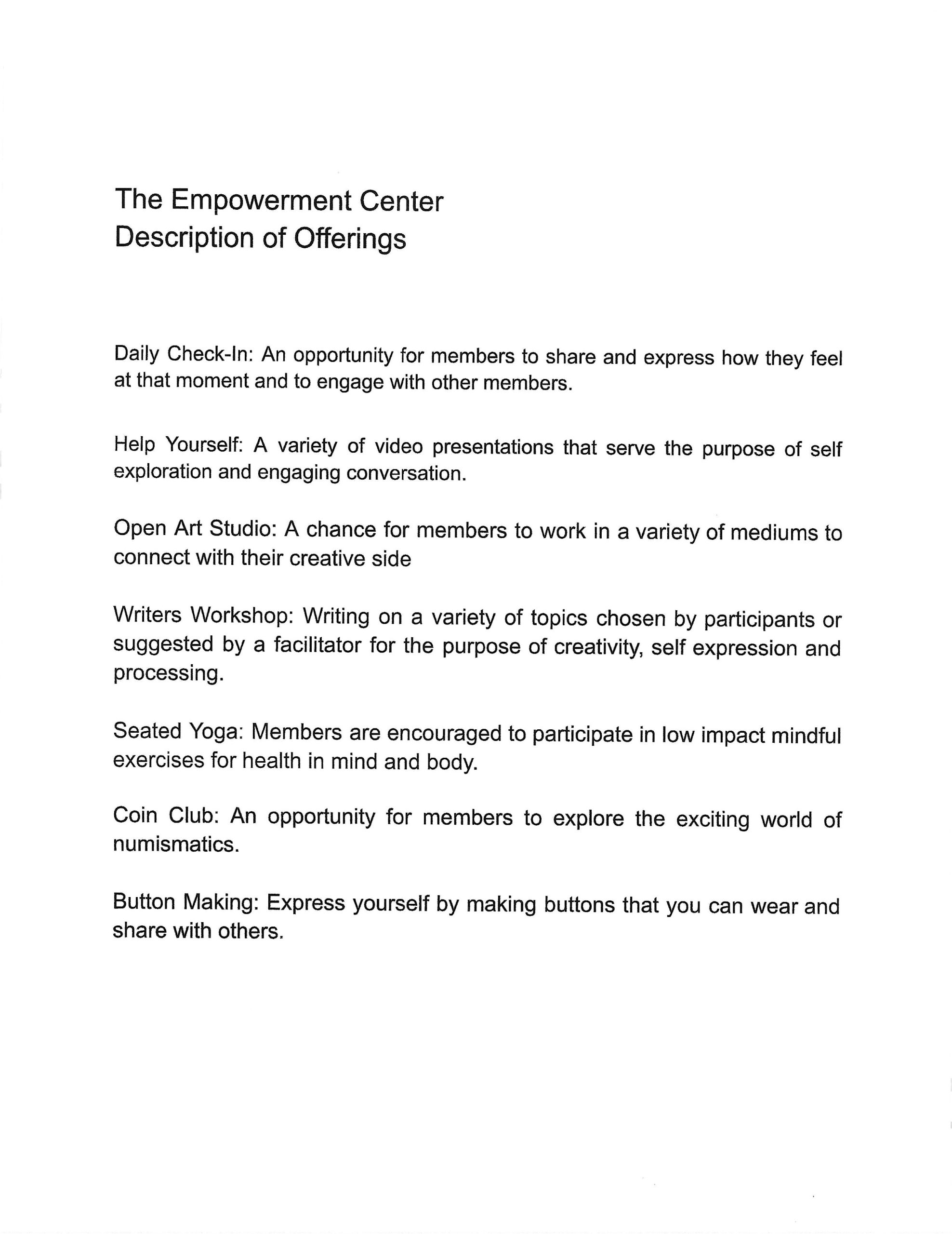 To view our Empowerment Center Monthly Group Schedule click here.