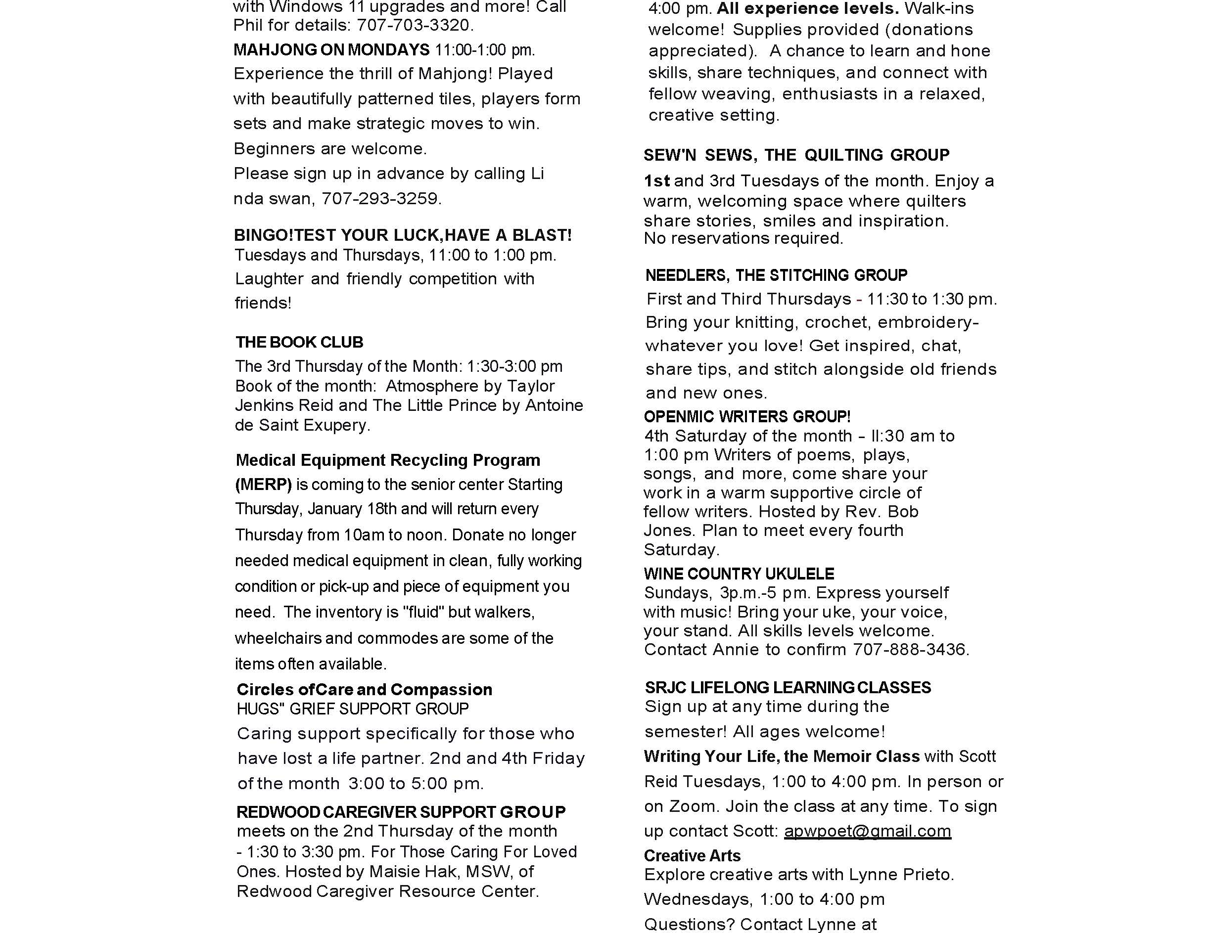 The Russian River Senior Resource Center is the only senior center on the lower Russian River. We are dedicated to offering services to seniors from various backgrounds, focusing on creating a welcoming and supportive environment. The staff at the center provide culturally sensitive programs, meal services, and social activities that aim to bridge gaps across our diverse community. The center emphasizes equitable access to resources, such as case management, transportation, outings, and communal meals, ensuring that all seniors, regardless of race, ethnicity, gender, or socioeconomic status, are welcome and belong.