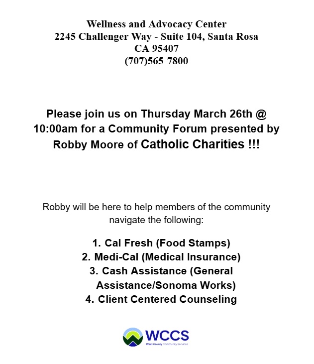 For more information call 707-565-7800 or visit us on Facebook.